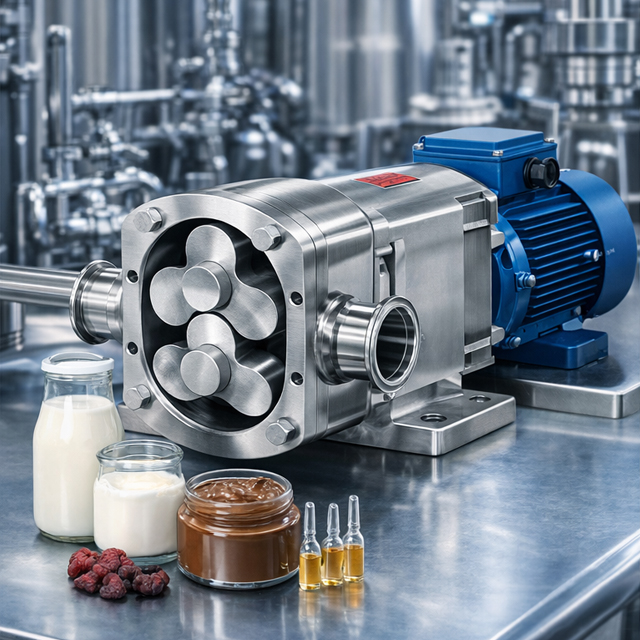 A bomba rotativa sanitária de três lóbulos é uma bomba de deslocamento positivo projetada especificamente para processos alimentícios, laticínios, farmacêuticos, biotecnológicos e de alta limpeza. Esta bomba emprega uma estrutura de rotor de três lóbulos, alcançando transporte estável de fluido através do engrenamento do rotor e alterações no volume da cavidade. Oferece vantagens significativas, como transporte suave, alta eficiência e estabilidade, fácil limpeza e conformidade com padrões de higiene.